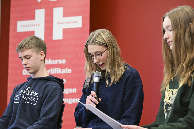 Mit Stolz möchten wir die eindrucksvolle Leistung der Schülerin Klara Sawallich aus der 10d beim „Leo, leo“ - Vorlesewettbewerb im Instituto de Cervantes würdigen. Klara setzte sich mit ihrer herausragenden spanischen Aussprache im Finale am 19. März gegen die starke Konkurrenz durch und sicherte sich den ersten Platz!